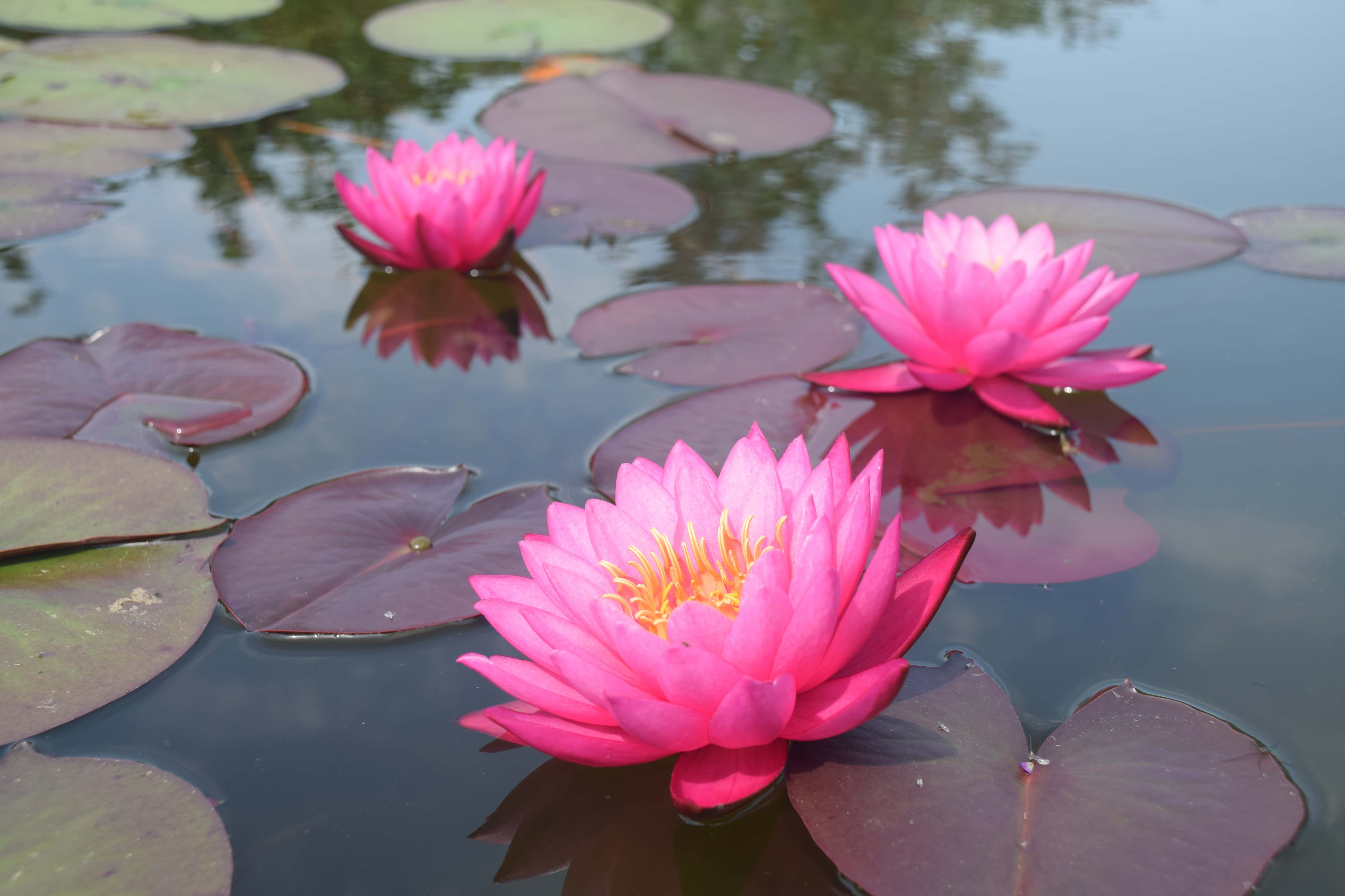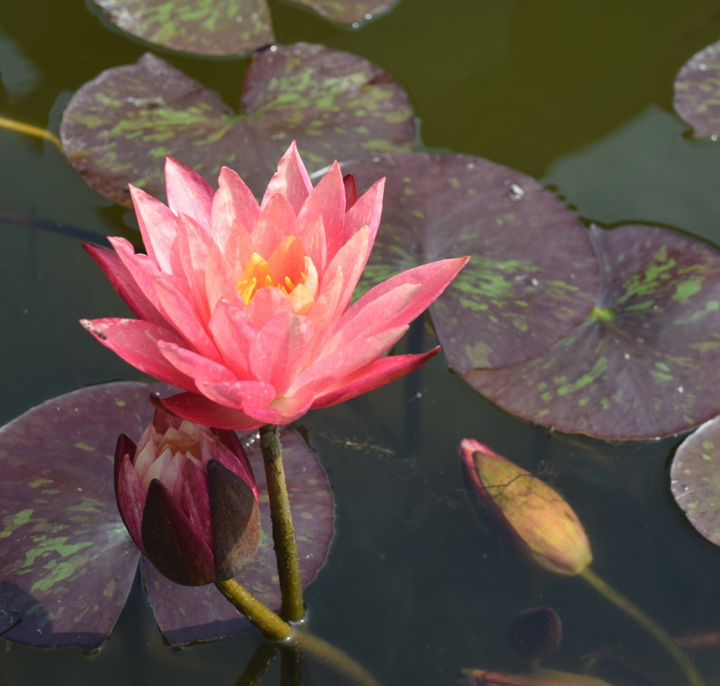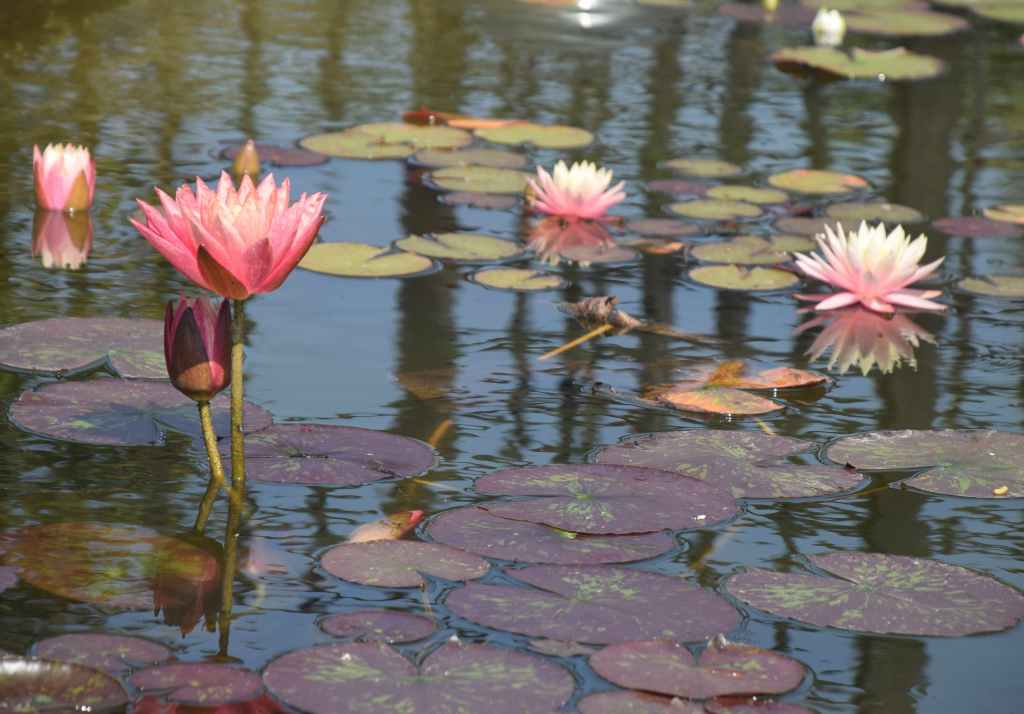 Waterlilies are not just attractive, they are useful to shade the water and suppress algal growth. They also offer shelter for the fish.
