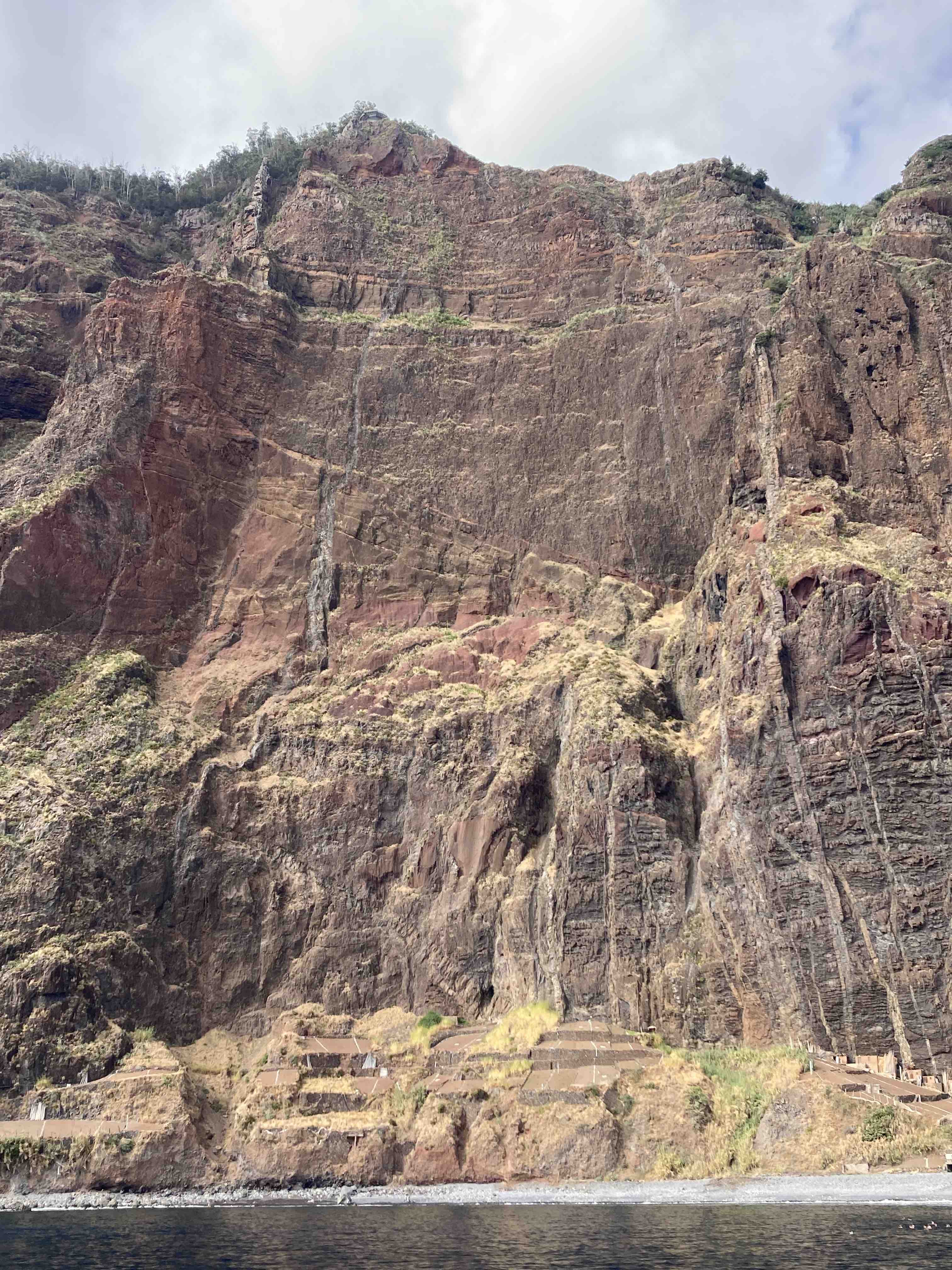 West of Funchal is the famous cliff at Cabo Girão, the tallest sea cliff in Europe (580m). It is usually seen from the glass-floored ‘skywalk’. But it is just as impressive, and slightly less scary from the sea. ,