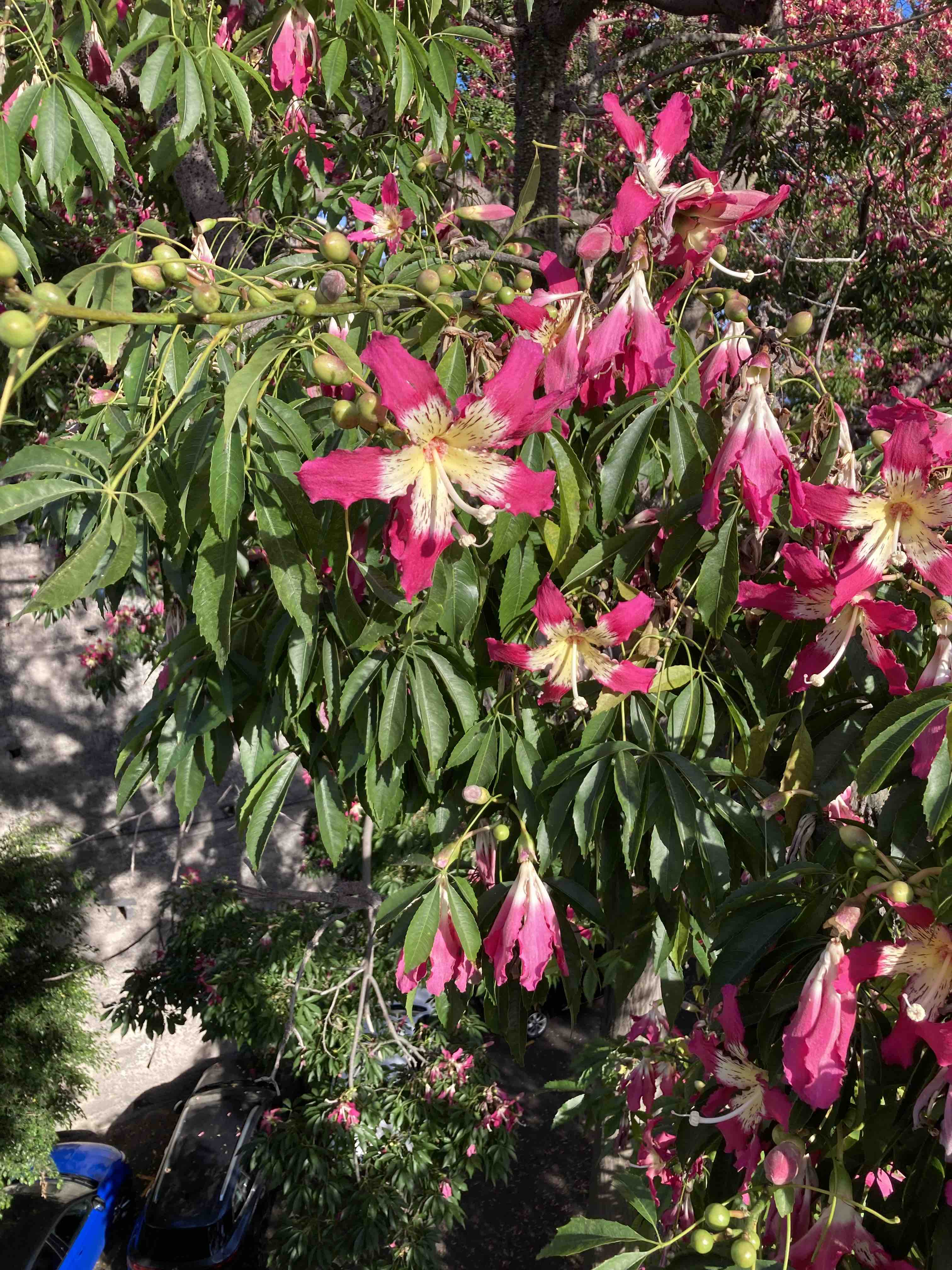 All over the island, at lower altitudes, the landscape was dominated by Ceiba (Chorisia) speciosa, a relative of the kapok tree. It is odd that every guide we talked to mentioned the tree and that no one seemed to know what kapok was. I guess it is all polyester these days but I remember buying kapok to stuff toys in my youth. It is distantly related to cotton but a very different plant, native to South America and distinctive for the spined young trunk and swollen bole. But it is the flowers that make it so wonderful, even when they drop and litter the paving.
