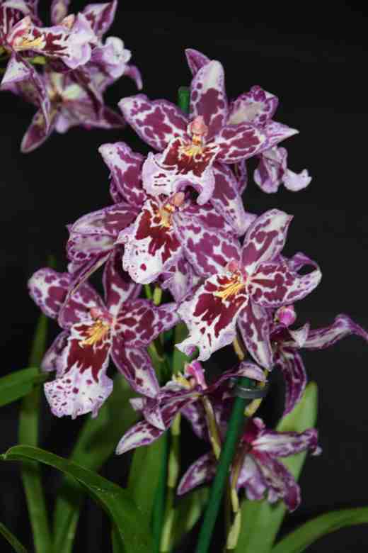 In general terms, orchid foliage is usually simple, not lobed or compound and is arranged in an alternate pattern and not paired along the stems. The flowers have free petals (usually not united as in a campanula) in two sets of three. The upper petal is often enlarged as a landing platform for pollinators. But, in most orchids the ovary behind the flowers is twisted through 180 degrees so the upper petal is actually at the bottom of the flower and is often called the lip. This and the other two inner petals are often very different to the outer three.