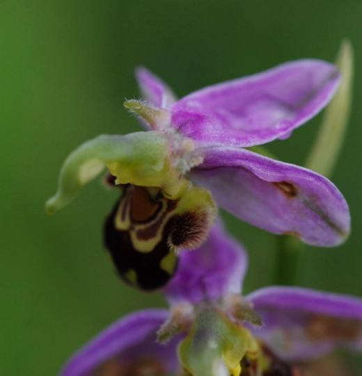 A bee orchid, using mimicry to exploit pollinators – the lip resembles a bee