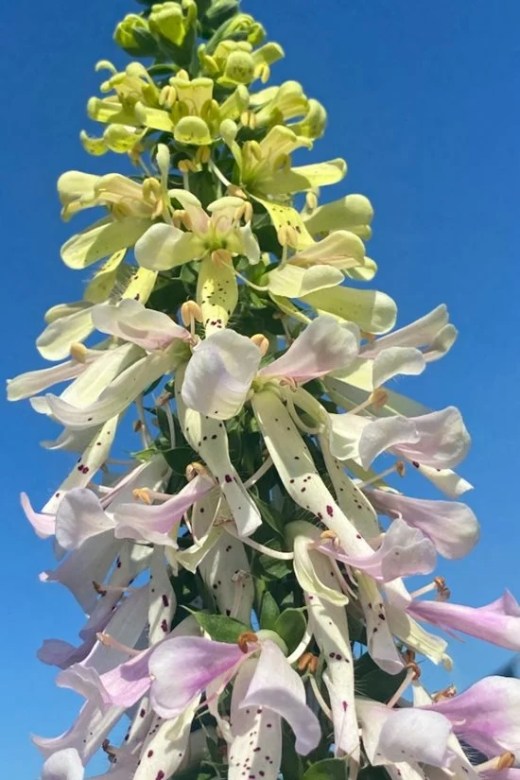 Some recent developments have produced ‘split’ flowers that, personally, I find very unpleasant. There are also ‘peloric’ forms that produce a large, saucer shaped bloom at the top of the stem. Strangely, although foxglove blooms always open from the base of the spike upwards (I wrote about this some time ago) the peloric blooms always open first.