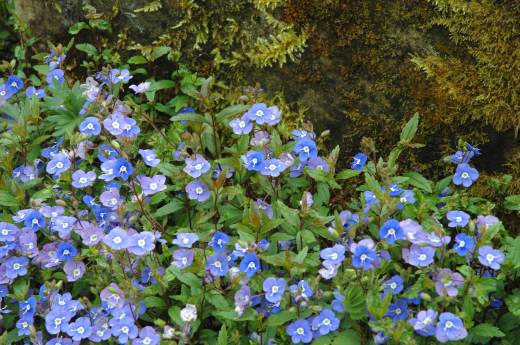 The genus veronica, at least the herbaceous kinds includes some annoying weeds such as the pretty V. persica and V. filiformis with really lovely blue and white flowers. In this garden the most common is V. hederifolia which has tiny flowers and seeds around a lot.