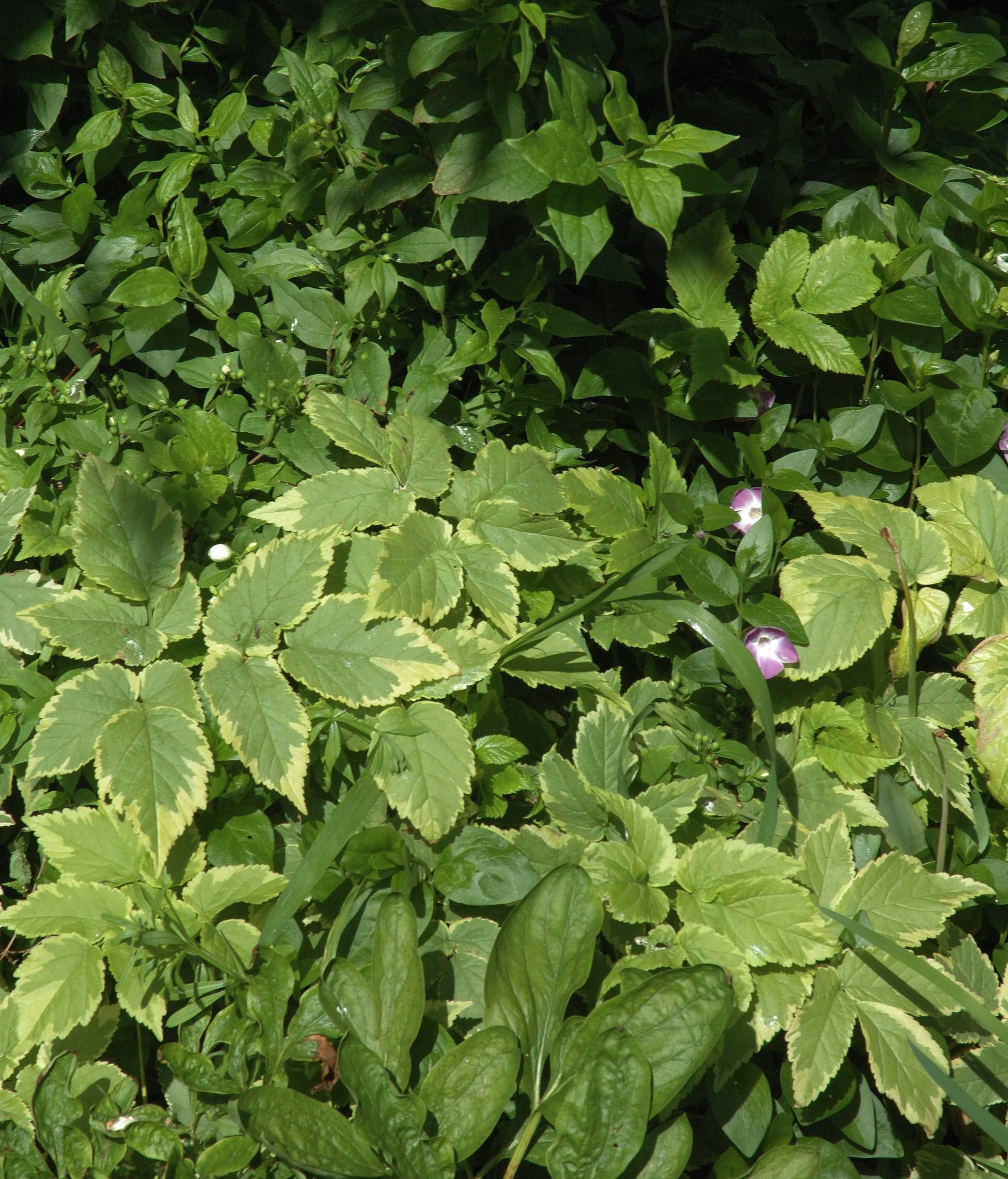 I ought to mention Aegopodium podagraria (ground elder) too since it was supposedly introduced into Britain as an edible crop by the Romans. We all know it as a weed and a very efficient weed too. Although I have not introduced it to this garden, I have grown several variegated forms as ground over in the past and it will be added here, in time. The variegated kinds are nice plants where you can tolerate vast patches.