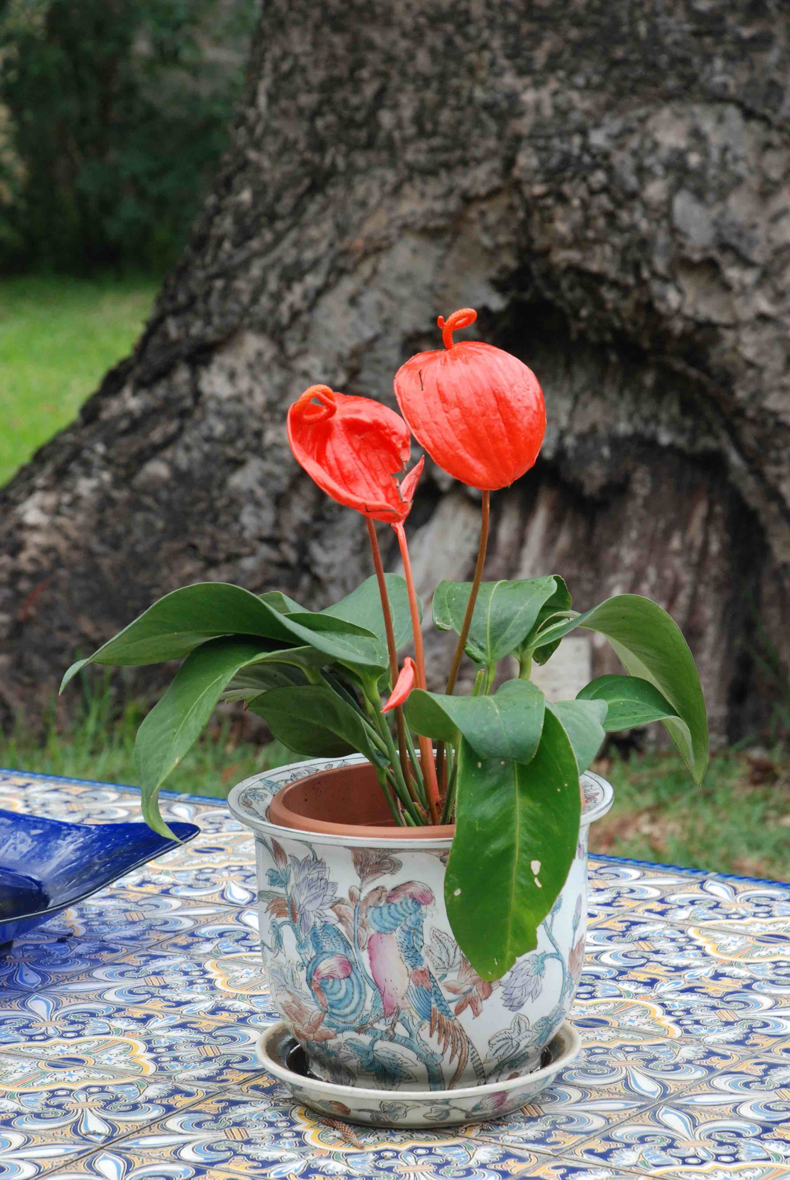 Anthuriums are usually seen as A. andreanum and, less often, A scherzerianum, both with red spathes, though there are lots of other colours and more than 1000 species. These are the only two species with colourful spathes, the rest are relatively dull but the foliage of many is extraordinary. These two and their many forms make easy houseplants for warm rooms, with long-lasting ‘flowers’ which are freaky enough to commonly be seen ornamenting Captain Janeway’s apartment on ‘Voyager’ and other sci-fi sets.