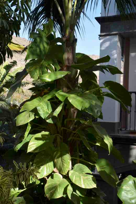 The easiest to please tends to be the small P. scandens which has many variegated forms. These resemble the rather similar Epipremnum aureum or pothos or Devil’s ivy, usually sold as a small plant but sometimes sold on moss poles. Like many climbing plants it has juvenile and mature foliage and although the juvenile leaves (all you are likely to see if you let your small plant wander across a coffee table) are small and heart-shaped, once it finds something to climb it the leaves become much larger and develop the slashes that presumably make the leaves less liable to be damaged by wind in their elevated position.