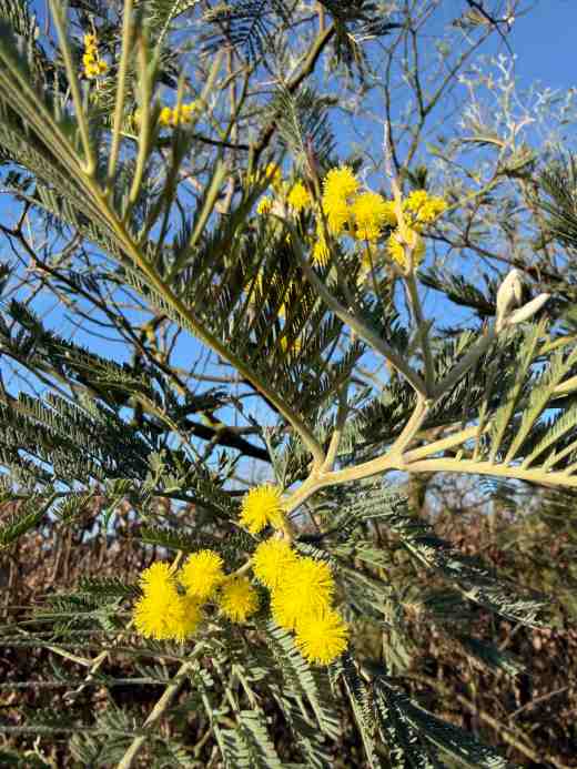 And against the odds, the mimosa (Acacia) showed a few of its beautiful flowers. This should be an annual event but it is not. I was stupid to plant it in the centre of the garden where the vicious winds strip it of foliage and the autumn-set flower buds throughout the winter. By autumn it is beautiful, covered in dainty, grey-green leaves and it has grown well, becoming the tallest tree in the garden. But by March it is usually stripped of foliage and buds. But lower branches, partly sheltered by a hedge to the south, escape the worst and this year there has been a smattering of bloom. I am grateful.